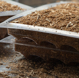 A shadow-casting panel made of biowaste and mycelium, in collaboration with mycrobez AG. The panels are created by collecting biowaste, shaping it appropriately, and allowing the mycelium to strengthen and stabilise the structure (cf. more information about the process). For this project we developed a new, "organic" geometry for the shadow-casting panels, more suitable for the materials in use. The resulting panels are robust for indoor applications, but at the same time they are 100% biologically decomposable when placed back in the nature.